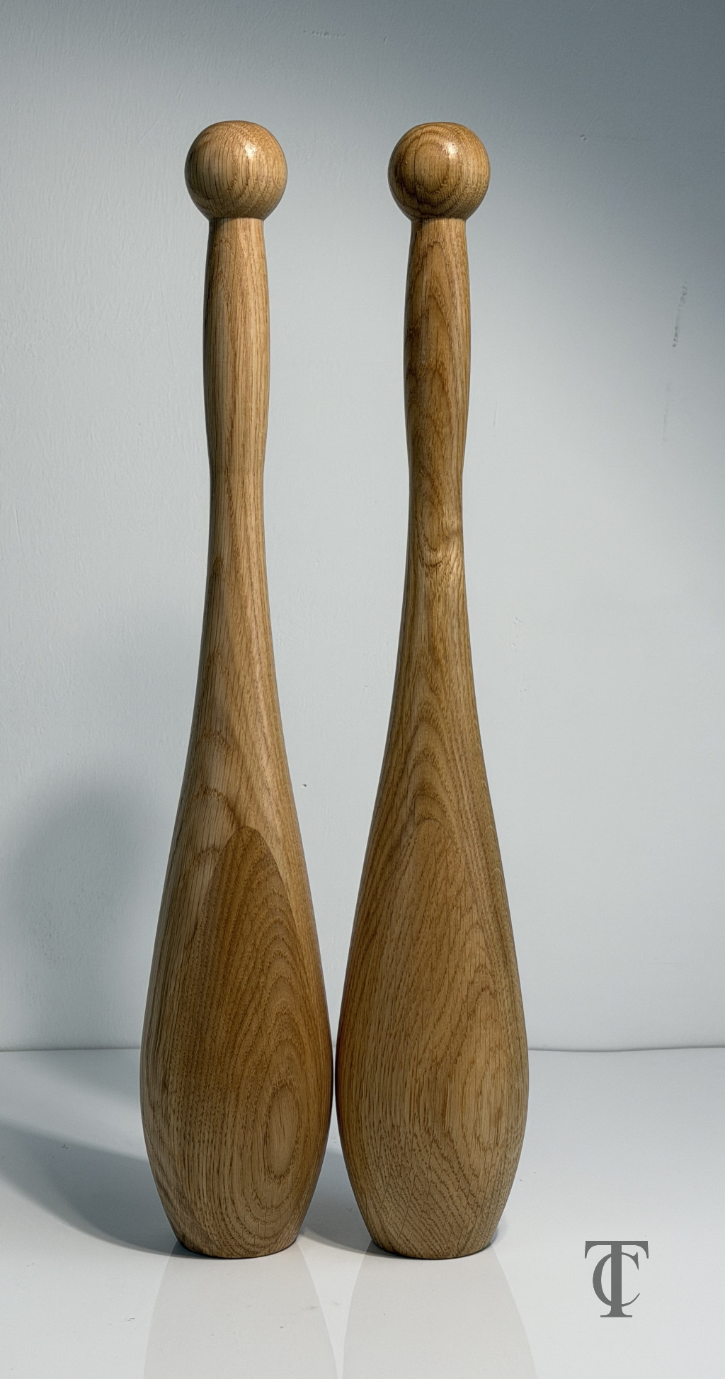 This is the Toldi™ Indian Club, the entry-level cornerstone of traditional strength training. It's beefier than its smaller sibling, but also nicely rounded to channel the developmental impact that comes with increased mass to where it's needed. Its handle also features a cross ring for spin and the experience of swinging these heavier clubs is priceless - in fact, for many power development techniques, it's easier to train with these heavier-loading clubs.